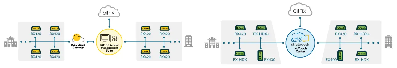 NComputing thin clients for Citrix integrate enterprise-grade device management software powered by IGEL Unified Management Suite or Stratodesk NoTouch Center, developed specifically with enterprise customers in mind, providing a highly scalable, flexible and easy-to-use single management point for NComputing devices. Organize deployments in single or multiple sites with one software solution that simplifies management tasks including firmware updates, configuration changes, device resets and more. By allowing administrators to access and manage all NComputing devices for Citrix from a single location, regardless of the size or number of deployment sites, the administrative overhead needed to maintain and control their environment is dramatically reduced.